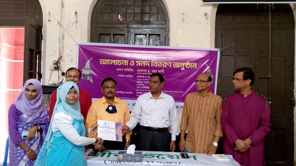 <span;>আত্মবিশ্বাসে আত্মরক্ষা” এই অঙ্গিকারকে সামনে রেখে বহ্নিশিখা-গ্রীন ভয়েস রাজশাহী কলেজ শাখার উদ্যোগে আলোচনা সভা ও সনদ বিতরণ অনুষ্ঠিত হয়েছে।এসময় রাজশাহী কলেজের বিভিন্ন বিভাগের আত্মরক্ষা প্রশিক্ষণে উত্তীর্ণ-৮৫ নারী শিক্ষার্থীর মাঝে সনদ বিতরণ করা হয়।
