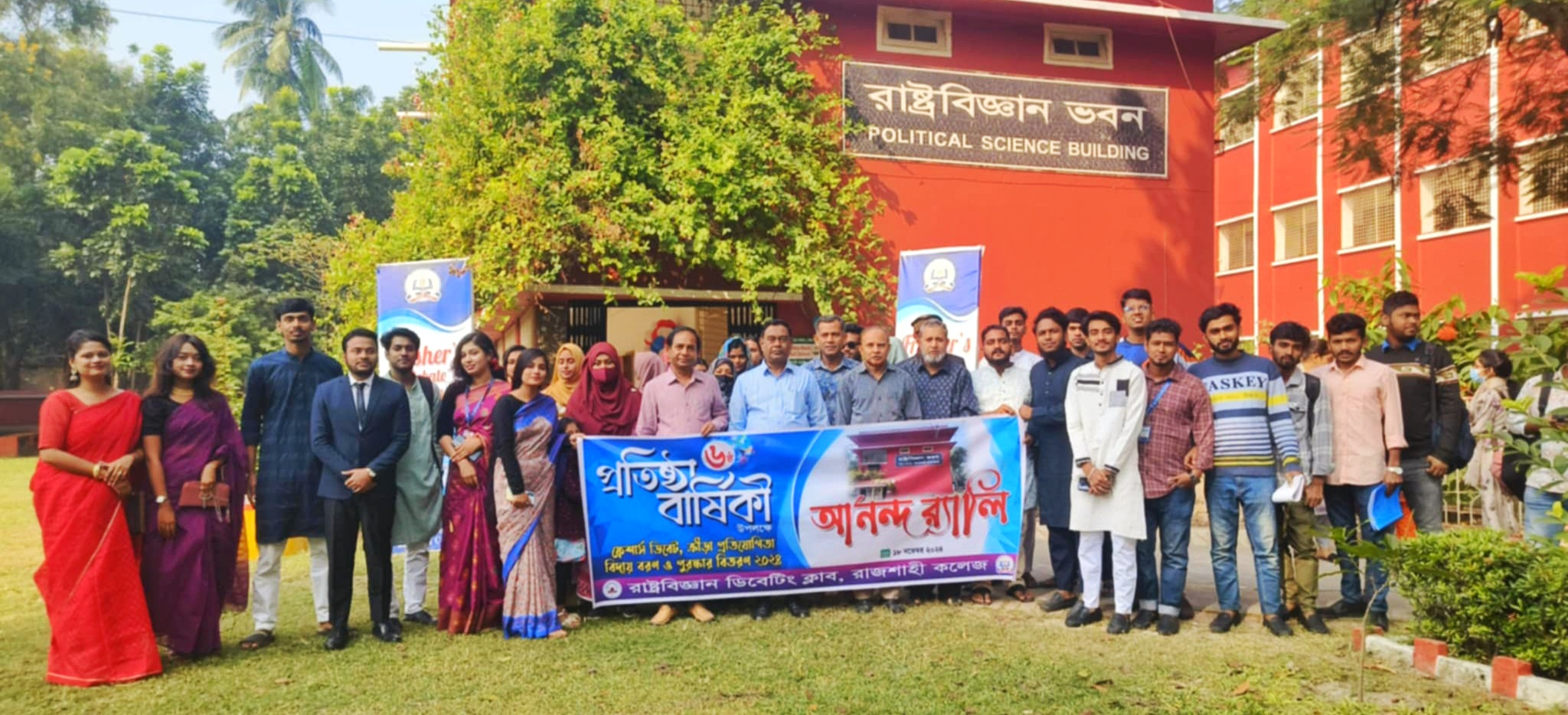 শিক্ষার্থীদের প্রাতিষ্ঠানিক শিক্ষার পাশাপাশি সহশিক্ষা কার্যক্রম হিসেবে বিভিন্ন বিষয়ে দক্ষতা বৃদ্ধির লক্ষ্যে রাজশাহী কলেজ রাষ্ট্রবিজ্ঞান বিভাগের উদ্যোগে পরিচালিত রাষ্ট্রবিজ্ঞান ডিবেটিং ক্লাবের ৬ষ্ঠ প্রতিষ্ঠাবার্ষিকী উপলক্ষে ফ্রেশার্স ডিবেট চ্যাম্পিয়নশিপ ২০২৪ ও পুরস্কার বিতরণী অনুষ্ঠান অনুষ্ঠিত হয়েছে। সোমবার (১৮ নভেম্বর) সকাল ১০টায় রাষ্ট্রবিজ্ঞান বিভাগের ১০১ নম্বর কক্ষে দিনব্যাপী বিভিন্ন কর্মসূচির আয়োজন করা হয়।